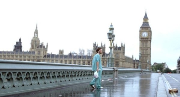 Throughout this horror, however, a family begins to form. Jim (Cillian Murphy), a bicycle courier who has been in a coma for the past 28 days or so, wakes up in a hospital, naked, alone, and totally unaware of what has happened. He wanders the streets of an abandoned London, shouting for any sign of humanity. Instead, he runs afoul of the infected in a church packed with the dead and the might-as-well-be. It seems even the devout were feeling abandoned, as someone has scrawled on the walls, “Repent. The end is very fucking nigh!”