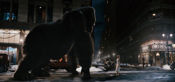 The scene that actually makes me tear up the most is just before that. After being taken from his home and away from the only person who showed compassion towards him, Kong is placed on Broadway in a reenactment of how he was discovered. When he discovers that the girl who was offered up to him on the island is being portrayed by another girl, Kong becomes enraged and escapes from his shackles, rampaging throughout the city. When Ann Darrow (Naomi Watts) finds out what is going on, she knows she’s the only one who can tame him and goes to find him. When Kong finally finds her, the film’s action gives way to something surprisingly, emotionally resonant as Kong and Ann bond together once again as the once destructive beast becomes a gentle guardian. Jackson’s version of the film gets rid of the strange romantic vibe and replaces it with a bond between two easily exploited individuals.