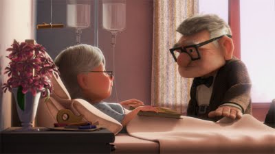 The couple gets a new home. Then, of course, babies are on Ellie’s mind. Sadly, we are shown that she cannot have children. They gradually recover, though, and set their sites on a new goal: going on an adventure to Paradise Falls, the land of wonder from their shared childhood. They set up a fund, but, of course, incident after incident chips away at their funding. Lost jobs, repairs, and, yes, hospital fees. The years keep passing, and the couple grows old but happy in each other’s company. But Ellie’s health begins to fade, and she’s not able to do all the things the couple wanted to anymore. Eventually, the bills and time become too much, and their plans to visit Paradise Falls are abandoned. And, then, one day, Carl has to give up Ellie, too…