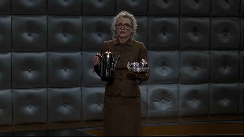 Selina Kyle in this film is a lowly secretar… er… executive assistant to the demeaning Max Shreck (named after the Nosferatu actor, by the way). Max and his associates basically treat her as one would expect jerk business moguls to treat their secretaries, and when she even dares pop in with any suggestions, they laugh at her right to her face. Selina’s life is spent being pushed around by other people, whether they be her boss, her mother, a selfish boyfriend, and even telemarketers leaving messages on her answering machine