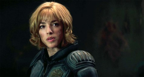 Karl Urban, tasked with never taking his helmet off (a rule carried over from the comics that the Sylvester Stallone movie ignored), manages to emote enough with his mouth and his stiff, militaristic gestures. Dredd doesn’t seem like the kind of guy who smiles a lot, with Urban wearing a nearly permanent scowl in the role, and he seems to see his service as a Judge as not only a matter of public safety, but a necessity to human existence.