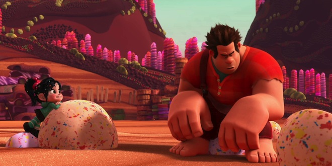 What at first seems like your typical “love yourself” film that Disney so often makes, there’s quite simply too much here to enjoy and savor to criticize the rather standard base that Ralph seems to be built upon. The heart of the story is the surprisingly touching and amusingly lopsided friendship that forms between the hulking Ralph, the tired villain who desires to become a hero, and Venellope von Schweetz, a shunned glitch who longs to become a legitimate kart racer in her own video game world, Sugar Rush. Surprisingly, the relationship between the two outcasts actually kinda resembles that of Bradley Cooper and Jennifer Lawrence in Silver Linings Playbook, now that I think about it – the two come to a mutual agreement based upon their shared insecurities. While the attraction between the two characters here isn’t of the romantic nature, the friendship that forms between the two is still just as poignant as their live action counterparts.