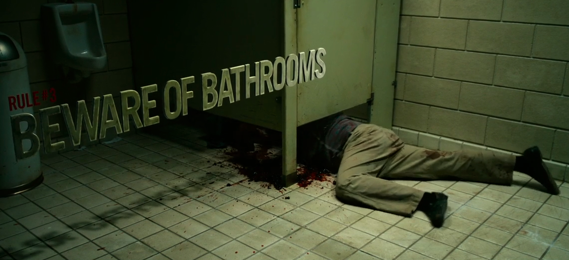 The tiny cast of primary actors (plus one major surprise cameo appearance that has become fairly well known by now but which I will refrain from spoiling within the review [but not in the tags], all the same) is superb. Jesse Eisenberg’s amiable Columbus is just the right amount of everyman that we can all relate to, even if you aren’t a nerd, but he’s nerdy and distinguishable enough to not outright be a stock character, either. Emma Stone and Abigail Breslin make for a fun duo as Wichita and Little Rock, two tough girls who led a tough life even before the outbreak, and both actresses lend their characters the right amount of vulnerability so as to avoid becoming compensatory, boring girl-power action heroes. (They are fleshed out characters who resemble actual people, in other words.) Woody Harrelson as the short-tempered, violence-prone Tallahassee is also fantastic – taking what could have been a ridiculous stereotype hick and helping to turn him into the sort of hero you initially put up with just to ensure that you have him on your side, only to realize that, deep down, he does care, after all.