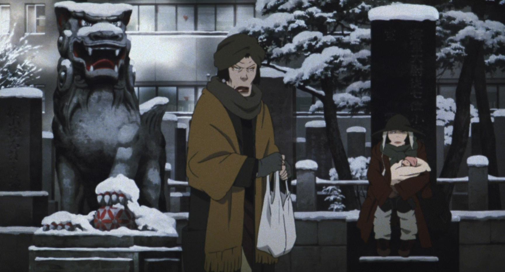 It’s an incredibly moving story, reflecting a maturity and grittiness that mainstream Western audiences don’t normally associate with the animation medium. There are moments of bleakness, and subjects that are normally reserved for live action films. And yet, if Tokyo Godfathers were made in the live action medium, I think we would lose a lot of what makes the film so memorable – the style and exaggerations of the characters’ body language, the way that the animators’ total control over the beautiful environments that are often so cold, so real, and yet somehow so beautiful, even when it’s showing us the trash heap where baby Miyuki was left, not normally a symbol of hope but, like the manger where Christ was born, a humble beginning where hope begins for both the baby, her caretakers, and those they come in contact with. Let’s also not forget that, in spite of the fact that the animators forego the full motion animation style that are used in Western hand-drawn films and even the anime films produced by Studio Ghibli, Tokyo Godfathers’ exaggerated, no less expressive and lively animation is still stunningly exquisite.