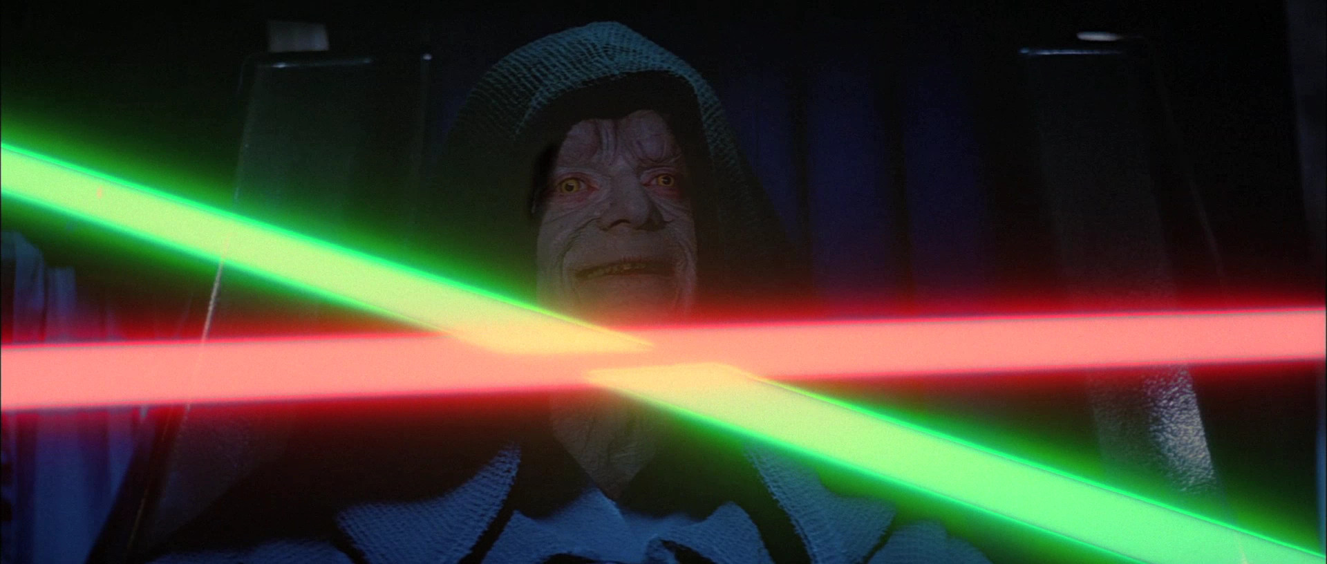 Return of the Jedi isn’t really a bad film, of course. It’s just that, in comparison to all the greatness that came before, it’s not a very satisfying conclusion, either, especially once you realize that empires really don’t crumble all that quickly just because you’ve killed off two of its top leaders. (No, I’m not counting the now-irrelevant Expanded Universe, but I’m sure Episode VII will address this somehow.) A lot of what the film actually does do well, though, is still immensely entertaining, even with some of the repeated stuff. Earlier scenes within Jabba’s palace are weird but entertaining, and the speeder chase through the Endor forest is pretty damn thrilling. The battle over Endor between the Rebels and the Imperial fleet is pretty exciting, too, given the expanded scope and easily rivals the dogfights seen in the first film. And once the film stops cutting to the freaking teddy bears, the battle of minds and lightsabers between Luke, Darth Vader, and the Emperor is pretty riveting on an emotional level, even with Ian McDiarmid’s somewhat excessive portrayal of the Emperor.
