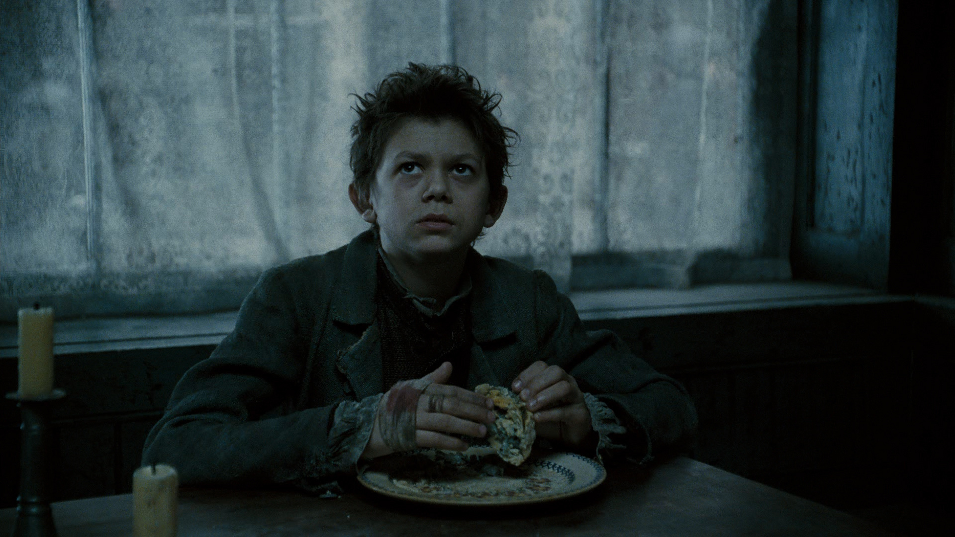 A perfect example of this is the relationship between the two side characters Anthony and Johanna, whose only interactions throughout are exchanging longing glances through a window and singing about either wanting to escape captivity or realize their distant love with one another. The songs themselves are quite lovely, but other than that, I couldn’t have really cared that much less for these two beyond the girl’s connection to Sweeney Todd himself. Similar but better is the song “Not While I’m Around,” sung by the little boy who confesses his infatuation with Mrs. Lovett. Not only does it further develop the characters and their relationship, the affectionate exchange has significant and heartbreaking ramifications later on, as well. Any issues mentioned here could very well be something present in the stage production, I recognize, but considering that Burton was able to take his liberties with this, if that was the case, Burton did not manage to quell them with his version.