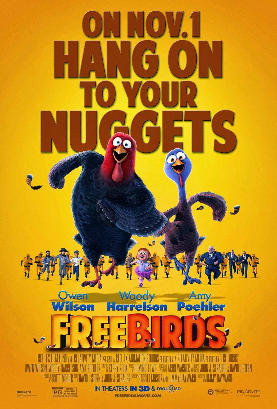 I felt like I should do something for this Thanksgiving, but, to be honest, I have already pretty much exhausted my Thanksgiving movie options after Planes, Trains and Automobiles and, to an extent, Miracle on 34th Street (unless I wanted to review the remake, too…). Luckily, last year brought us a brand new Thanksgiving film to watch just before Turkey Day: Free Birds, a film that will have you shouting at the person who announces they’re about to put it on, “Play ‘Free Bird’!” because you’ll undoubtedly rather hear a great but very long Lynyrd Skynyrd song than see the movie that apparently didn’t even have the sense to license the song for the obvious reference I just made. (It instead plays a cover of CCR’s “Up Around the Bend” as played by Social Distortion over the credits. I guess it is a much more upbeat song, but I’m not too certain lyrical context really matters to a movie like this.) When I told people what I was reviewing out of desperation for another film, they strongly advised that I instead review the Charlie Brown TV special, which… yeah, that probably would’ve been more tolerable, but I felt like I should at least exhaust all theatrical film options, and at least this film was on Netflix streaming, so I wouldn’t have to take up a slot in my DVD queue, either. So, yeah, I watched Free Birds. … Here’s the review.