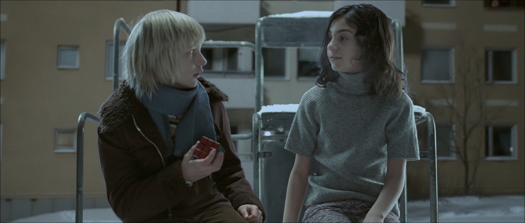 The most fascinating aspect of the film is how it portrays Oskar and Eli as tragic victims of their circumstances and yet also very clearly depicts them both as having dark sides that both admittedly are willing to tap into, to some extent. This is mirrored in Eli’s relationship with Håkan. Since we know Eli’s secret from the beginning, the film would at first seem to have us empathize with the older man, who is at the mercy of a child who can only subsist on the human blood that he has to collect. However, one has to wonder about how he came about becoming Eli’s familiar, considering his present age, and Eli’s appearance and pitying affection towards him as well as Oskar. This then brings to mind several questions. Who is the true victim, and who groomed whom? Or have the scales fluctuated with time? Across multiple victims? How many victims have there been? The how, when, and why of this relationship are never fully explained (unlike the 2010 remake, which sort of shied away from pedophilia), but the way in which this longstanding relationship mirrors and contrasts with that of the one only now forming between the lonely Eli and attention-starved Oskar and the unease and uncertainty of what lies ahead for them, given their circumstances, is certainly the most intriguing aspect of Let the Right One In.